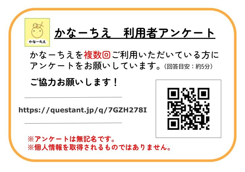 かなーちえ・かなーちえサテライトでは、利用状況や利用者の皆さまのご意見を知るために、年に一度、利用者アンケートを実施しています。