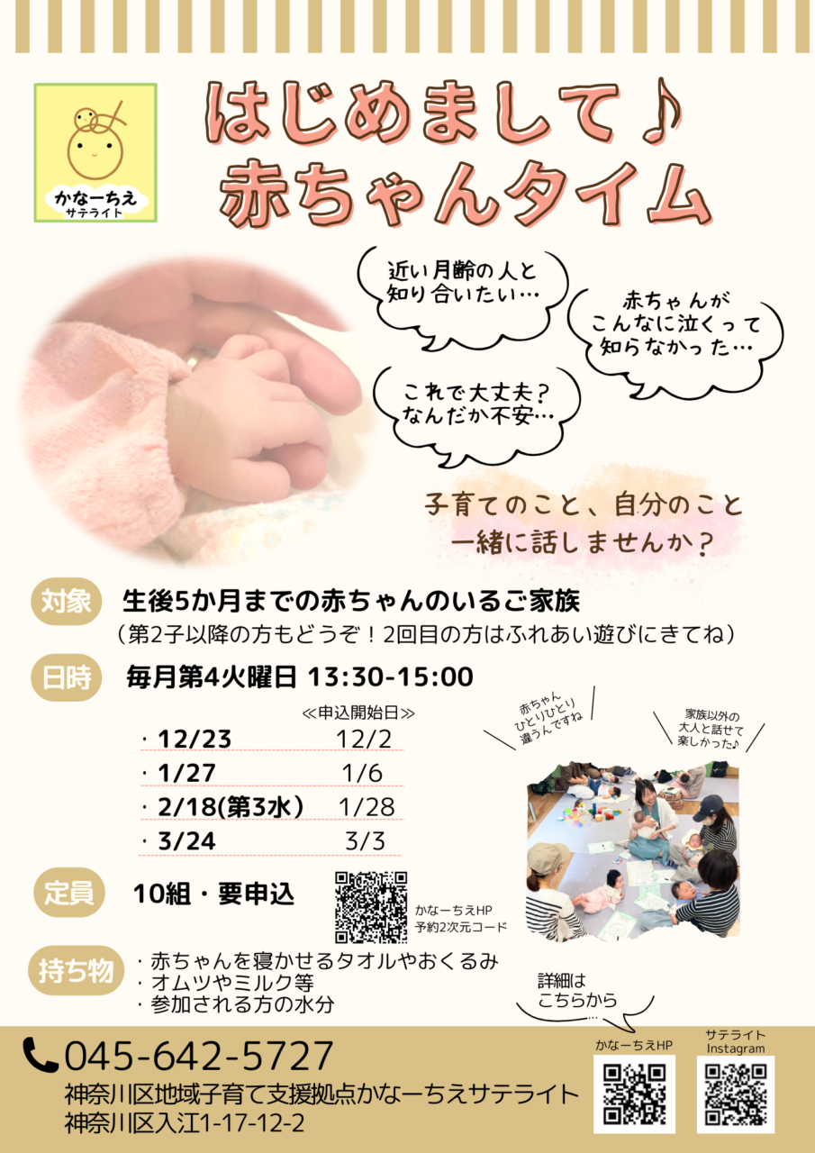 ※かなーちえ横浜子育てパートナー、神奈川区役所保育教育コンシェルジュの個別相談は、いつでも受け付けています。