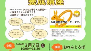 3/8(土)認知症サポーター養成講座 かなプラ子育て応援タイム@片倉三枚地域ケアプラザ